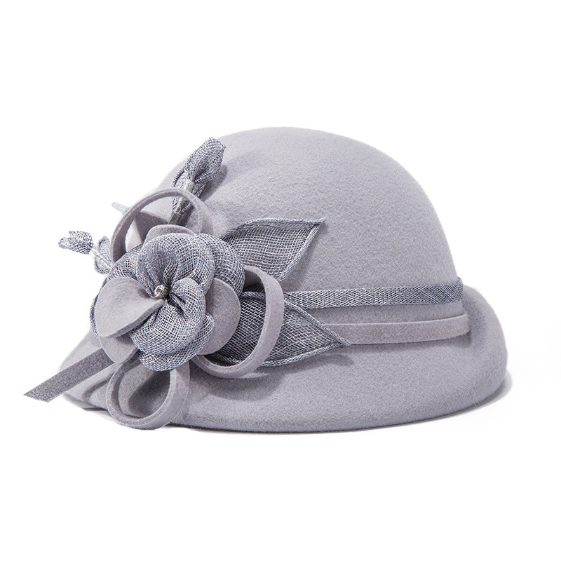 靈瓏2022新品秋冬天英倫名媛禮帽女優(yōu)雅宴會羊毛氈帽復(fù)古麻紗花朵
