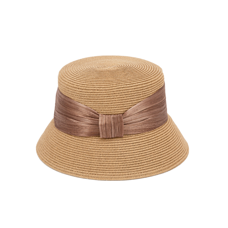 法式女夏季遮陽防曬出游草帽盆帽優(yōu)雅真絲麻裝飾