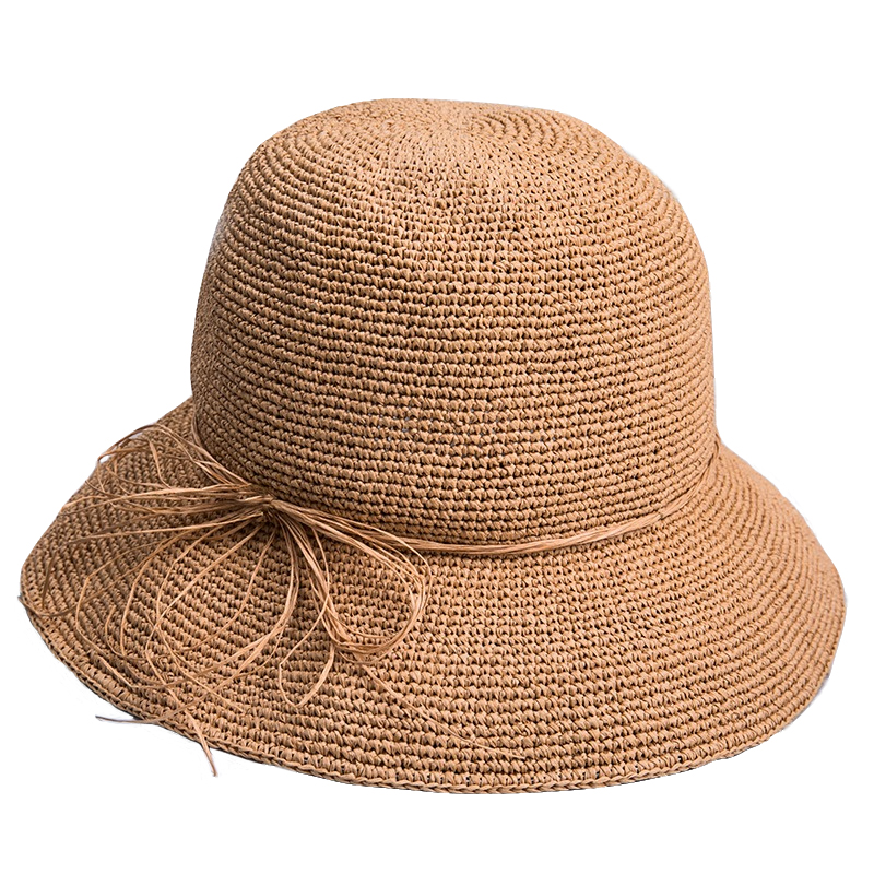 靈瓏服飾女士蝴蝶結(jié)鉤針太陽(yáng)帽 夏天戶(hù)外防曬大沿可折疊沙灘草帽