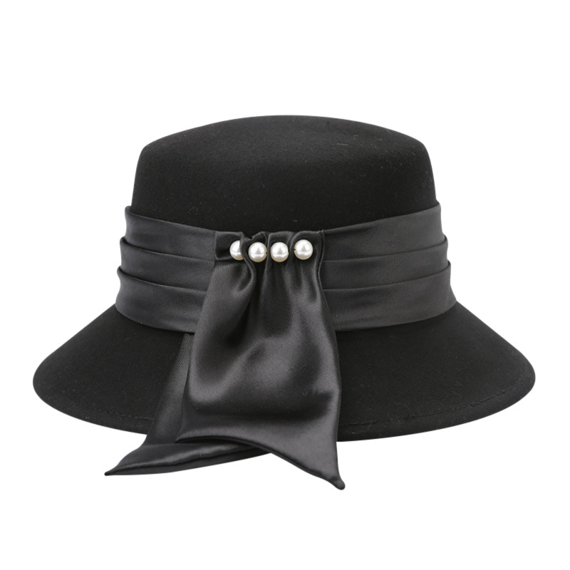靈瓏 秋冬時尚保暖漁夫帽 約會小禮帽 羊毛帽 絲帶珍珠帽子批發(fā)